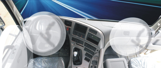 在正駕駛位的氣囊裝在方向盤的中間位置,副駕駛位置的安全氣囊裝在正前方的平臺內部,在意外發(fā)生的瞬間可以有效的保護駕駛員和副駕駛位乘員的頭部和胸部,因為正面發(fā)生的猛烈碰撞會導致車輛前方大幅度的變形,而車內乘員會隨著這股猛烈的慣性向前沖造成跟車內構件的相互撞擊,另外車內正駕駛位置的安全氣囊可以有效的防止在發(fā)生碰撞時方向盤頂到駕駛者的胸部,避免致命的傷害
